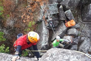 秋の深まる中、紅葉を眼下に太刀岡山左岩稜、二子山中央稜と二日間ガイドし…