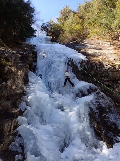結氷が危ぶまれましたが見た目よりもしっかりとした氷で十分登ることができました。