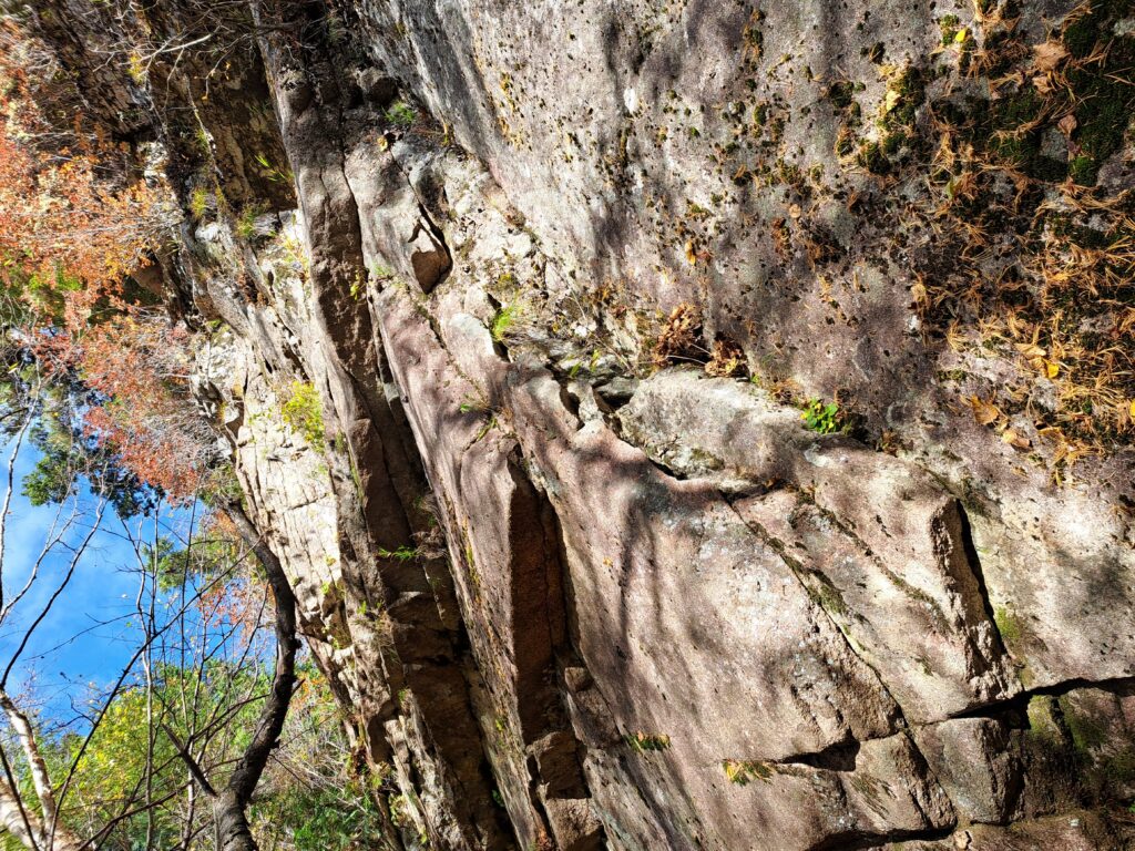 廻り目平の駐車場から40分ほど林道をあるき右手の森の中に小ぶりな岩壁が現れる