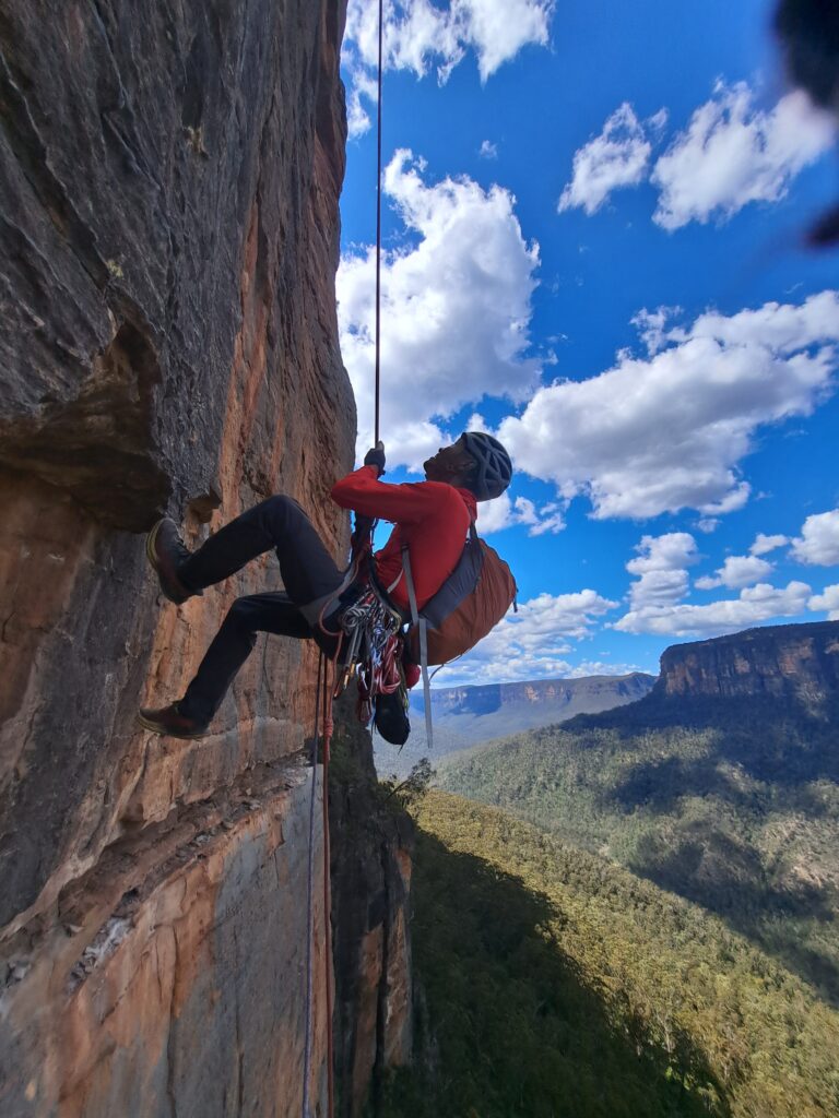 ロープの末端が空中に浮いているなか降りていくのはかなりの恐怖