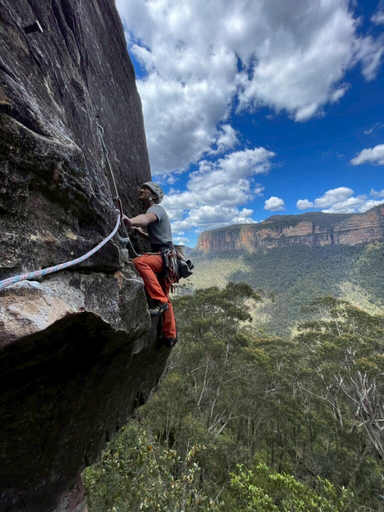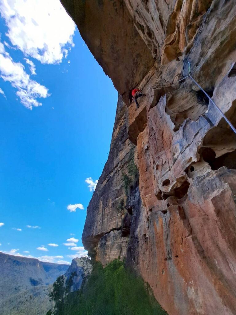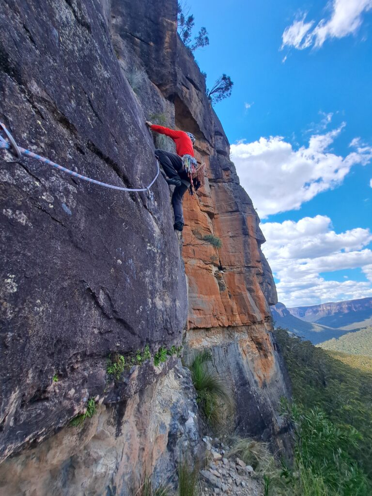 大ルーフをトラバースしたのち薄被りのフェースを20m登る