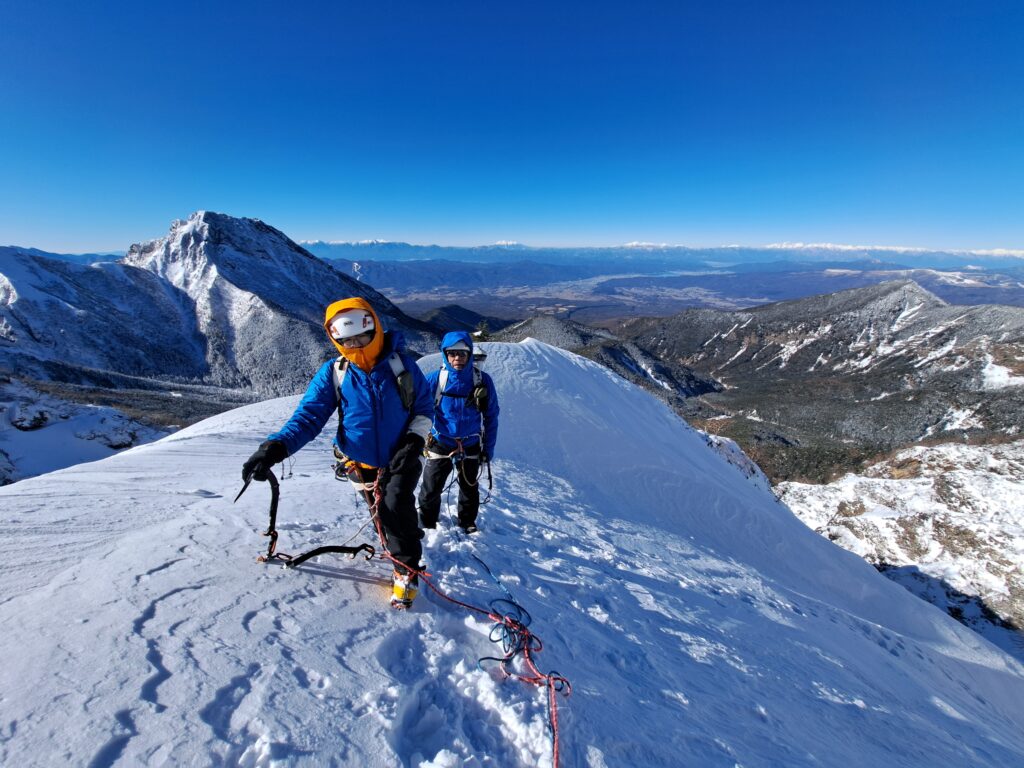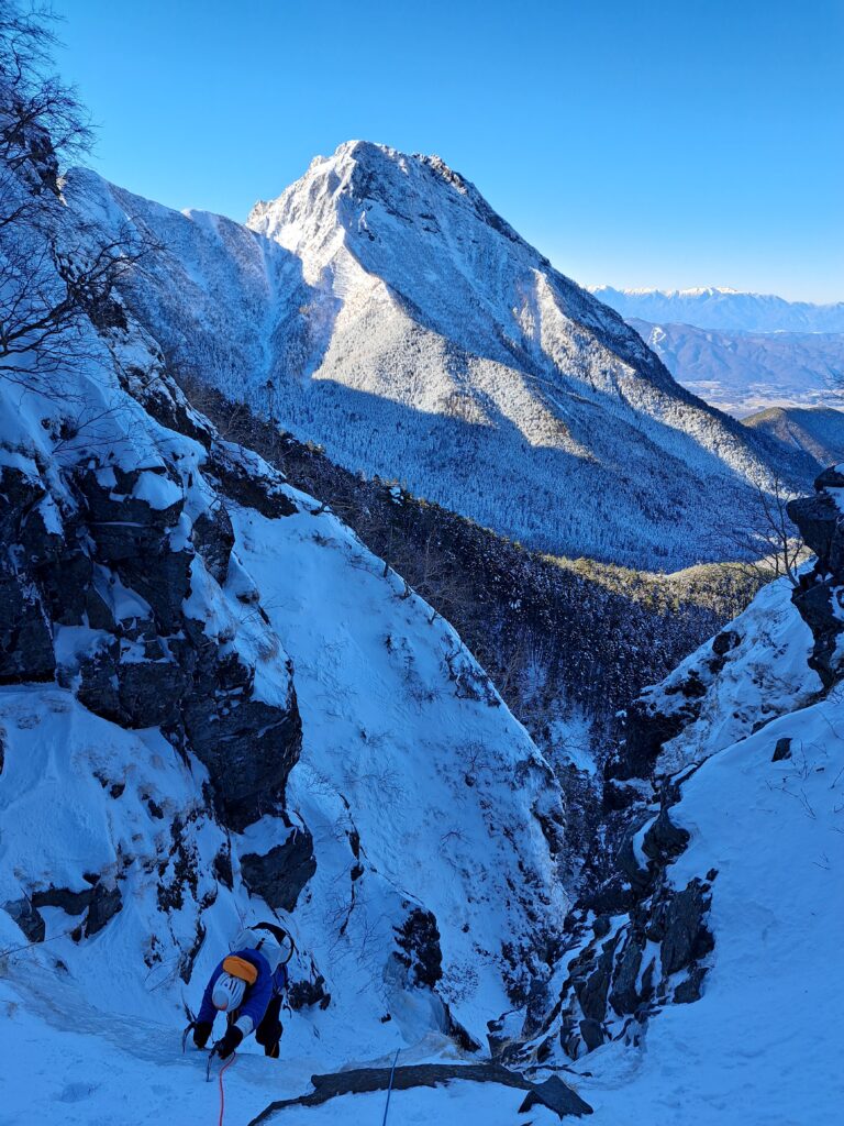 氷の部分は裏同心ルンゼ程度、石尊稜上部も阿弥陀岳北稜くらいの難易度で初級者には程よい課題であるし何より景色が素晴らしい