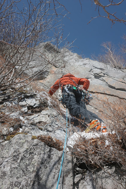 所々、残置ハーケンもあったが信用できないので使わず、自分でアンカーを作る