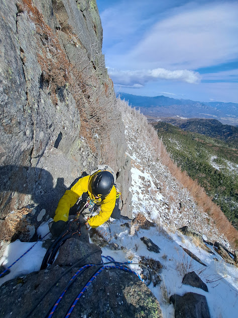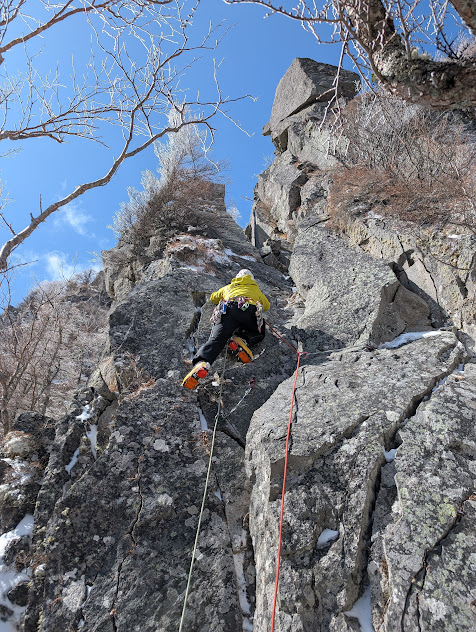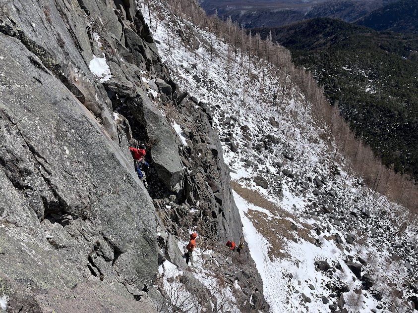 稲子岳の良いところは登攀ラインが横並びで沢山あること
