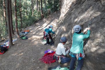ロープワーク講習の三回目は天覧山の岩場におこないました。 インドアで学…