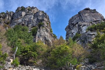 涸沢岩峰群からの帰路、金峰山川の対岸、烏帽子岩の右手に見える岩塊がいつ…